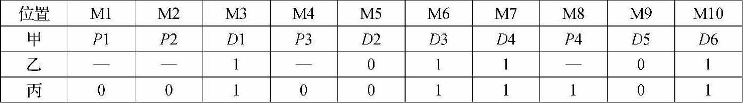 现在,假设海明码为0010111101,其中数据 D =101101。第5位错了,第5位现在的值是0,如果错了,它只能是1。对方接收到了这样的一组编码,如图1-6所示,接收方如何找出错误的位置?