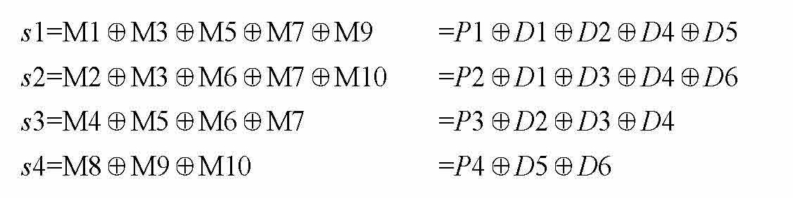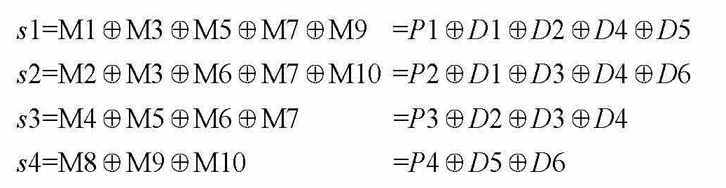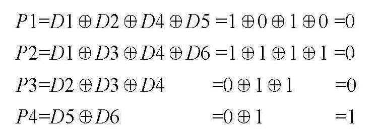 求图1-4中 P 1 P 2 P 3 P 4的值。因为是4位校验码,所以我们能够用 s 4 s 3 s 2 s 1来表示这个4位校验码。