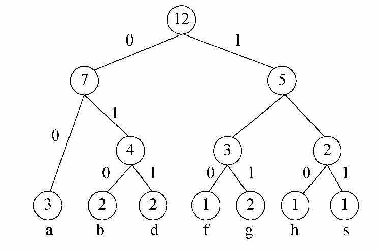 由上面的哈夫曼树可知,各个字符的编码如下: