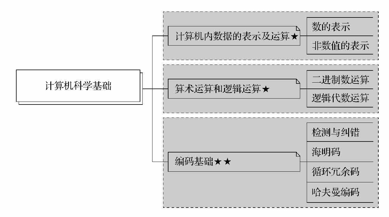 计算机科学基础考点如图1-1所示,用星级★标示知识点的重要程度。