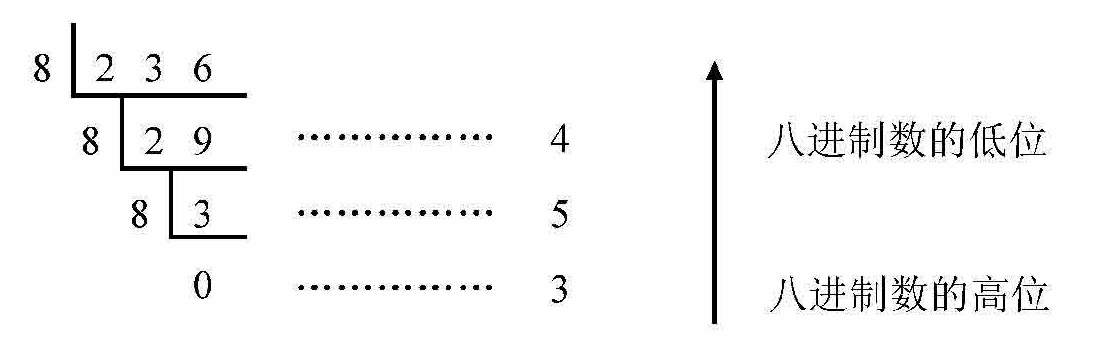 (2)十进制转换为八进制的方法(除8取余逆排法)
