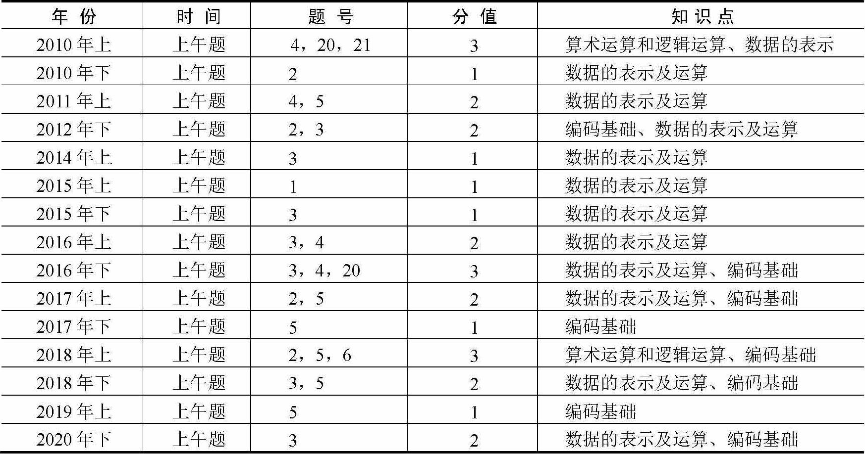 统计2010年至2020年试题真题,本章主要考点分值为1~3分。历年真题统计如表1-1所示。