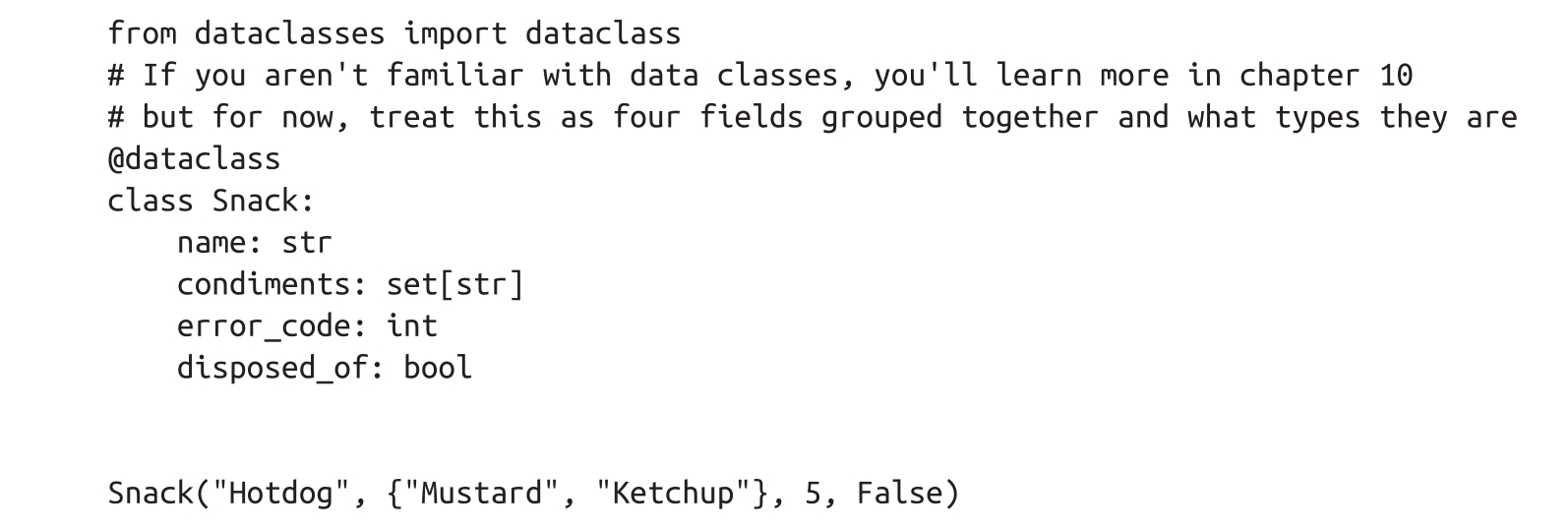 在下一章中,我们将继续从注解单个值的类型入手,并学习如何正确地注解集合类型。集合类型在Python代码中无处不在,因此开发者必须注意表达意图。你同时需要精通集合的所有表达方式,包括某些需要自定义类型的情况。