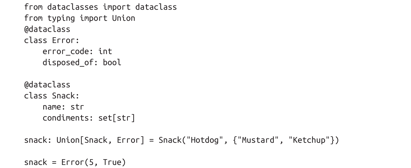 使用Union与使用Optional有异曲同工之妙。首先,你可以在沟通上获得相同的优势。遇到Union的开发人员马上就能知道他们需要处理多种类型。此外,类型检查器对Union和Optional的支持一样丰富。