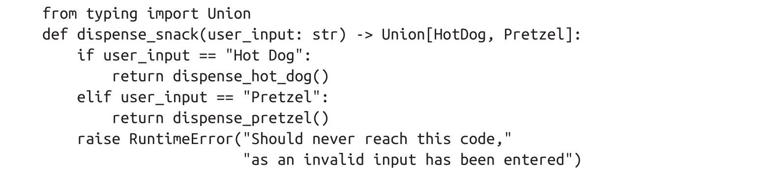 假设你有代码调用了dispense_snack函数,但只期望返回一个HotDog(或None):