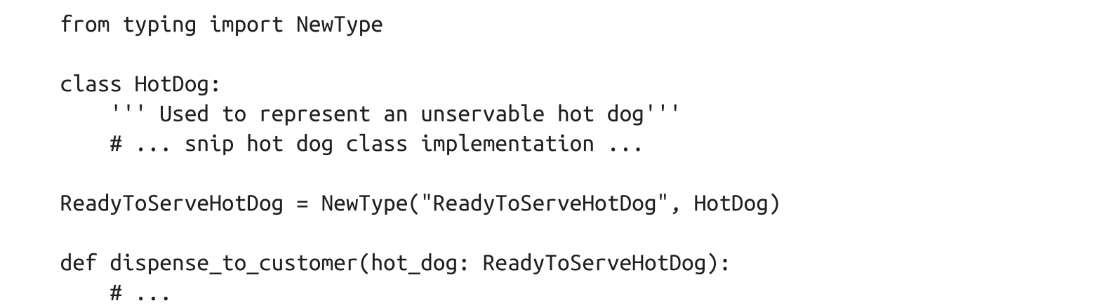 除了等待工具支持Annotated,还有另一种用于表示复杂约束的方法可供选择:NewType。NewType允许开发者创建一个新的类型。