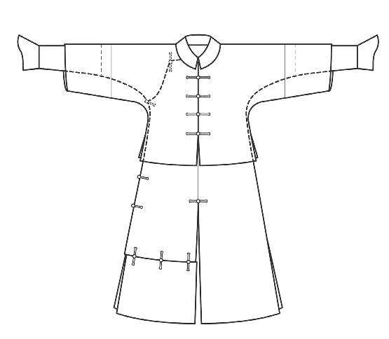“袍”是清代最具代表性的服装,对于帝王官宦,袍是代表身份不可缺少的服装。清代男子“袍”的基本款式仍然延续了唐宋袍衫的特点,不同之处是在下摆处开衩,其中皇室贵族开四衩,官吏士庶开二衩,普通百姓以不开衩居多。