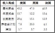 表3-5 美、英、法三国高级管理人员收入构成(%)