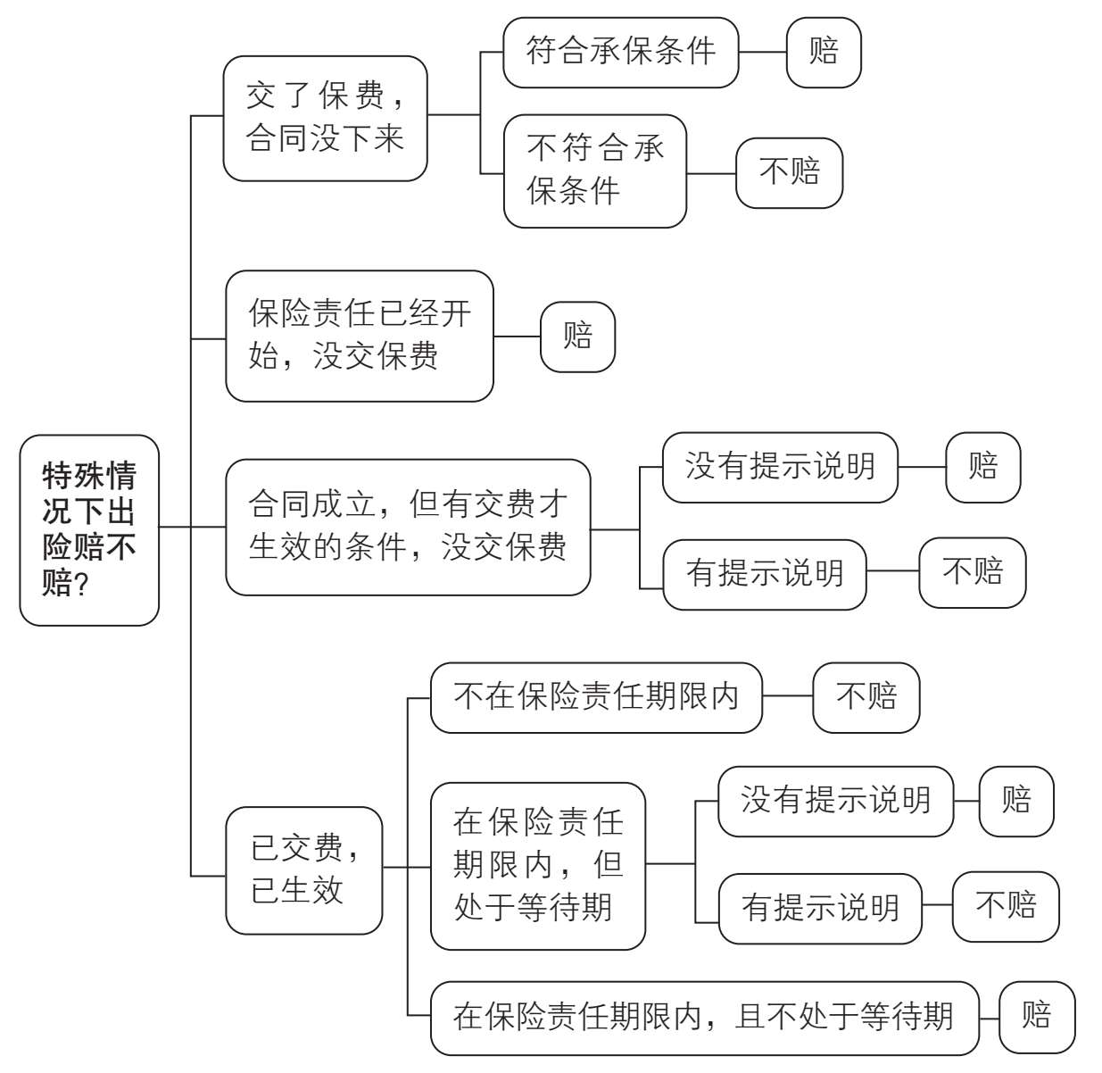 第四,保险合同成立并生效了,投保人也交了钱,但出现事故的时间不在保险责任期限内,或者发生事故的时间处于等待期(一般认为,等待期也属于保险公司需要提示说明的内容),保险公司就不用赔付。
