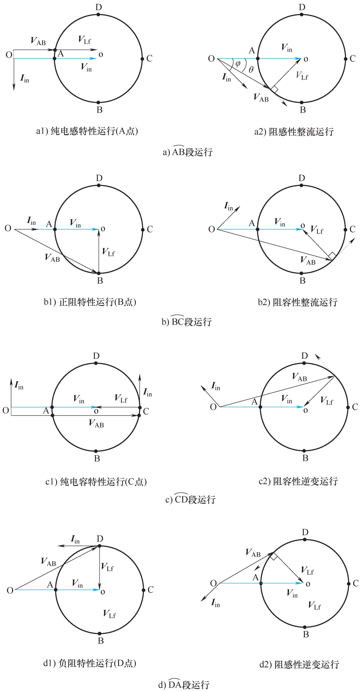 端点轨迹上有4个特殊的运行工作点A、B、C、D,下面对工作状态进行分析。