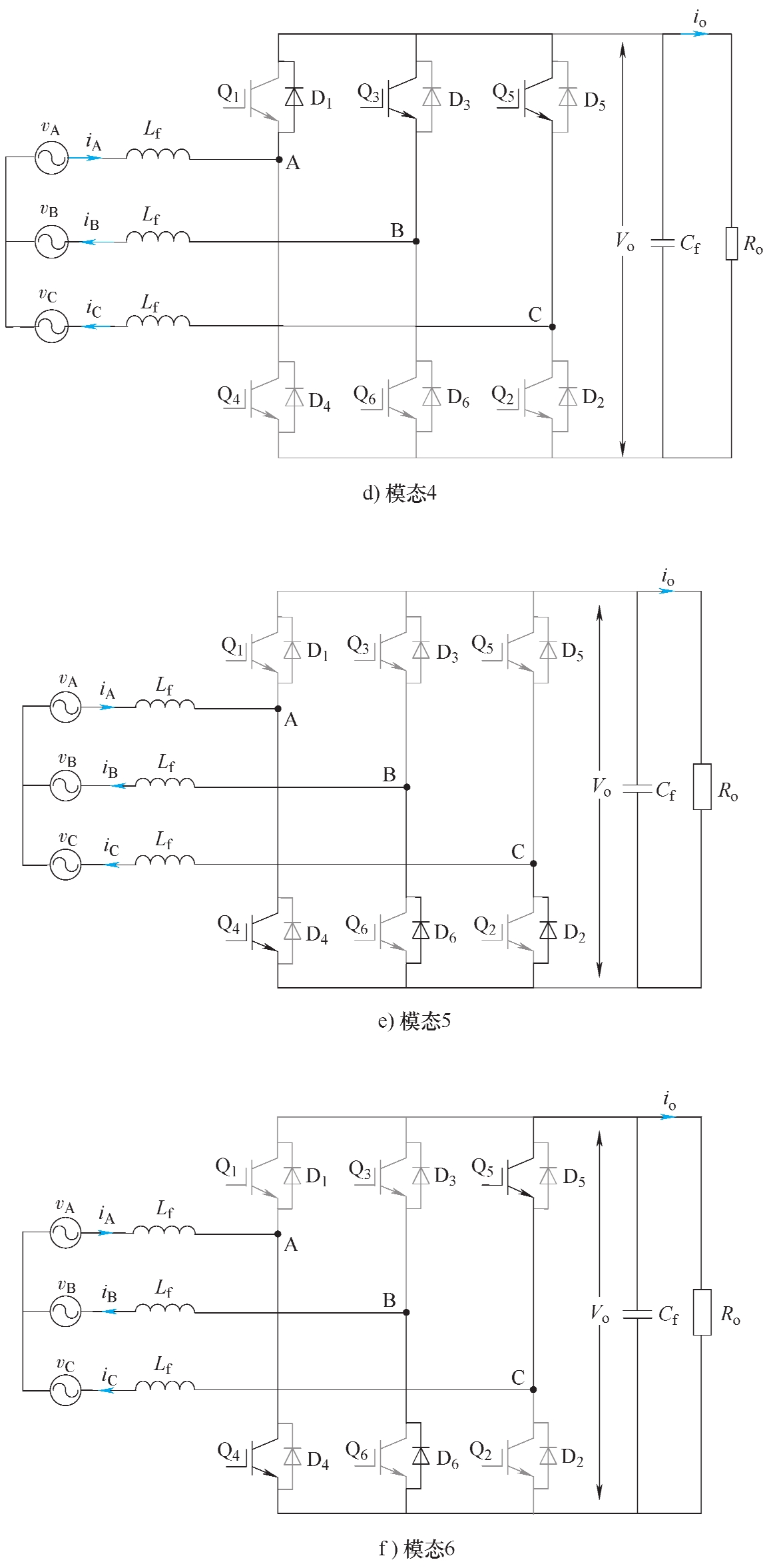 :如图2.17e所示,整流器上桥臂器件均为关断状态,电流经过Q
