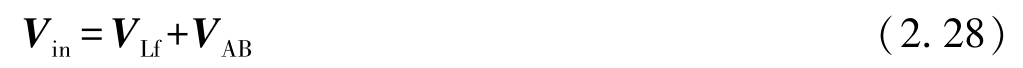 在图2.12中,设 V in 为电网电压矢量、 V AB 为交流侧A、B两点之间电压矢量、 V Lf 为电感电压矢量。PWM整流器控制的主要目标是对交流电流(也即电感电流)进行控制,其工作原理的分析可借助交流侧元件的电压/电流关系进行。忽略电网谐波影响,以电网电压矢量作为参考,借助对交流侧电压矢量 V AB 的控制来实现对变流器交流电流的间接控制。