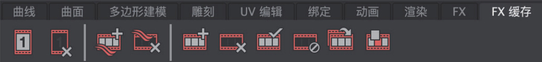 “FX缓存”工具架主要由可以设置动力学缓存动画的相关工具按钮组成,如图1-22所示。