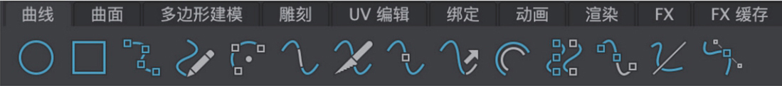 “曲线”工具架主要由可以创建曲线及修改曲线的相关工具按钮组成,如图1-13所示。