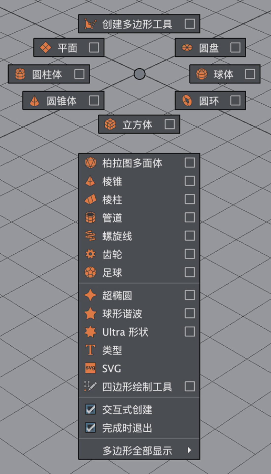 多边形平面:用于创建多边形平面。