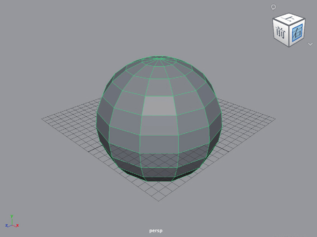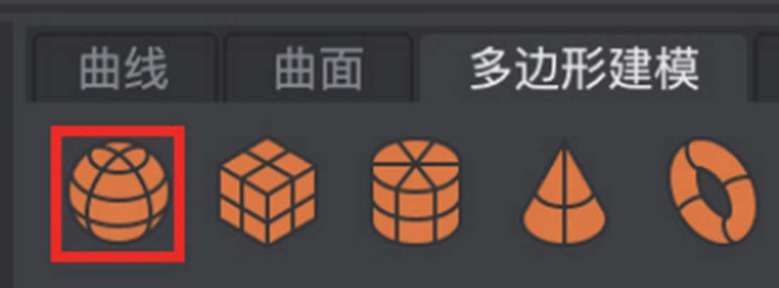 02 单击“多边形建模”工具架中的“多边形球体”按钮,如图3-7所示。