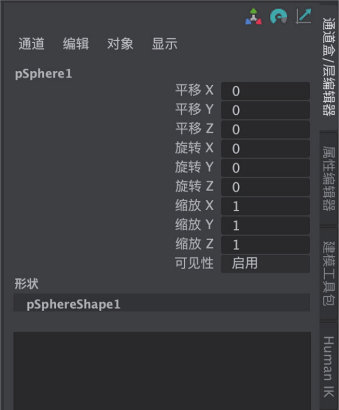 11 再次观察“通道盒/层编辑器”面板,可以看到球体模型“输入”组内的数据被全部清空,如图3-18所示。