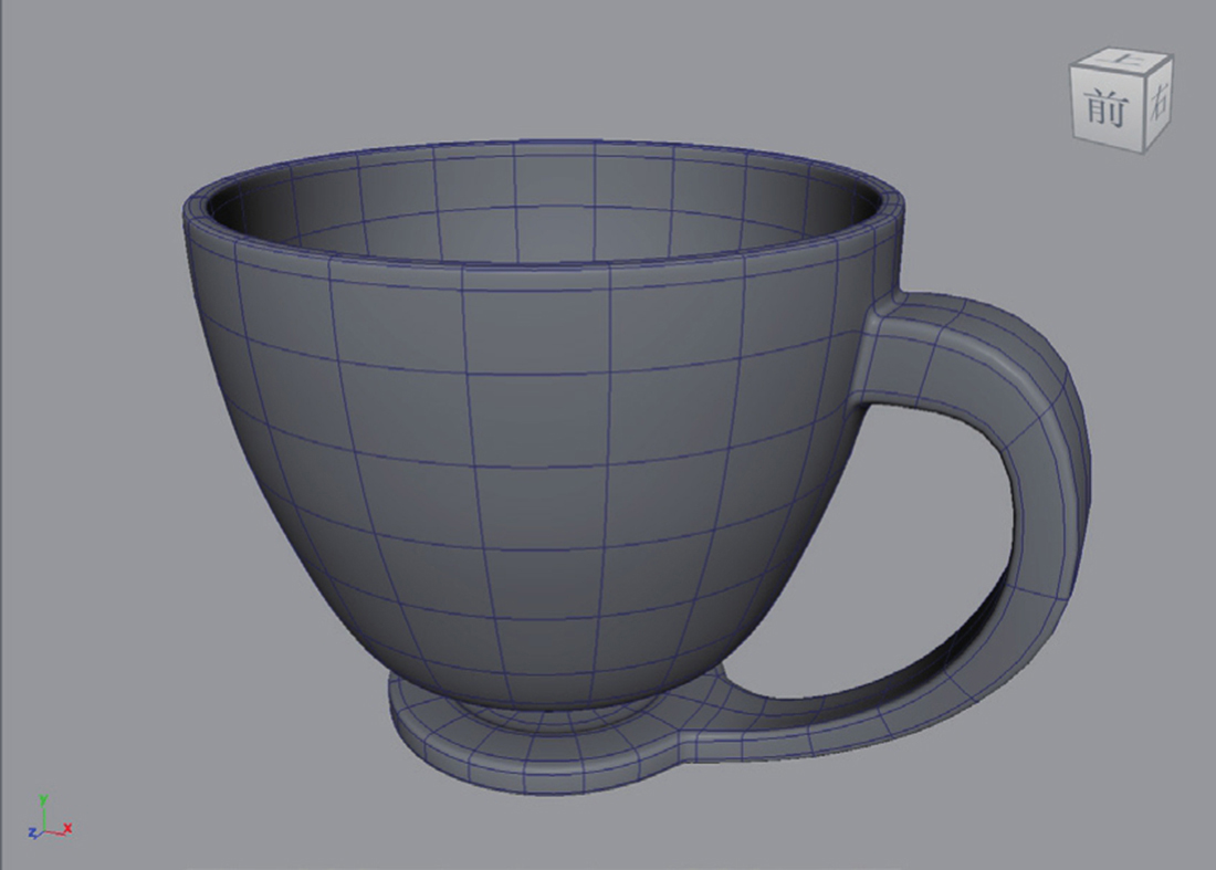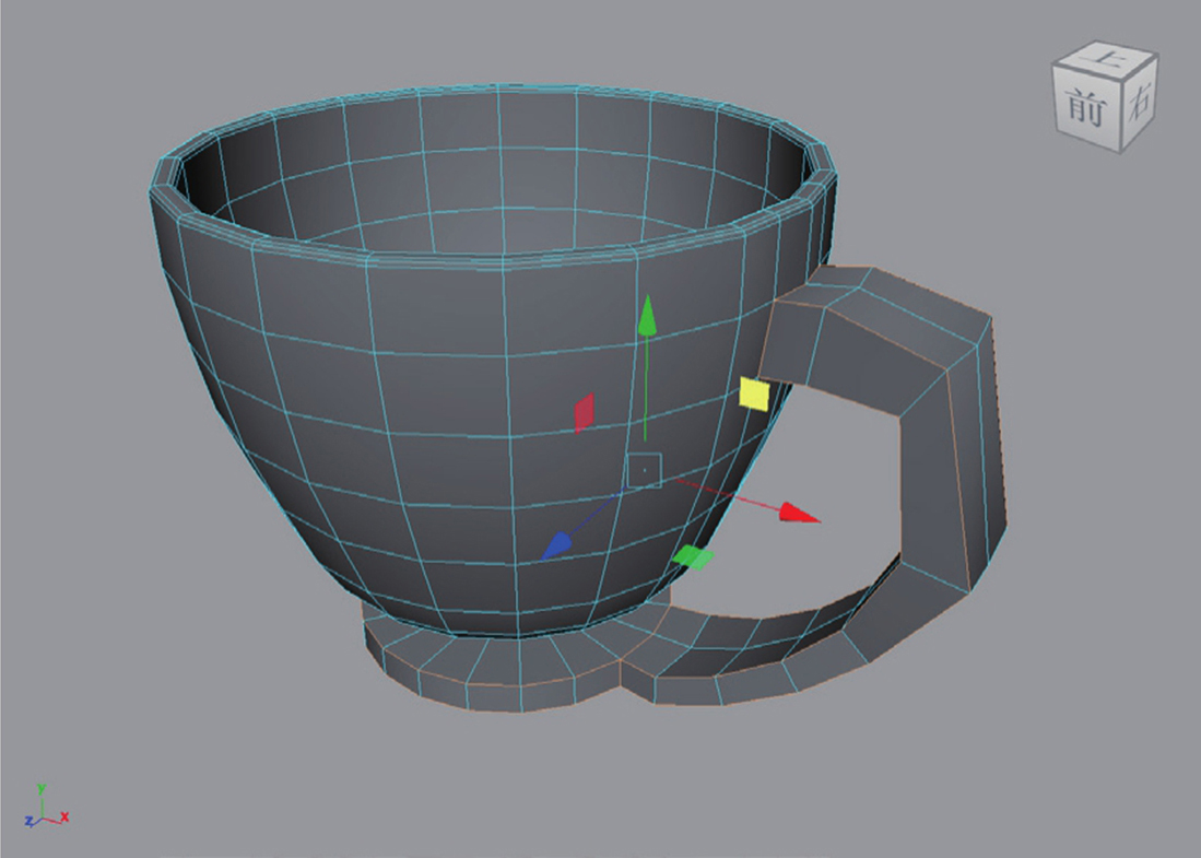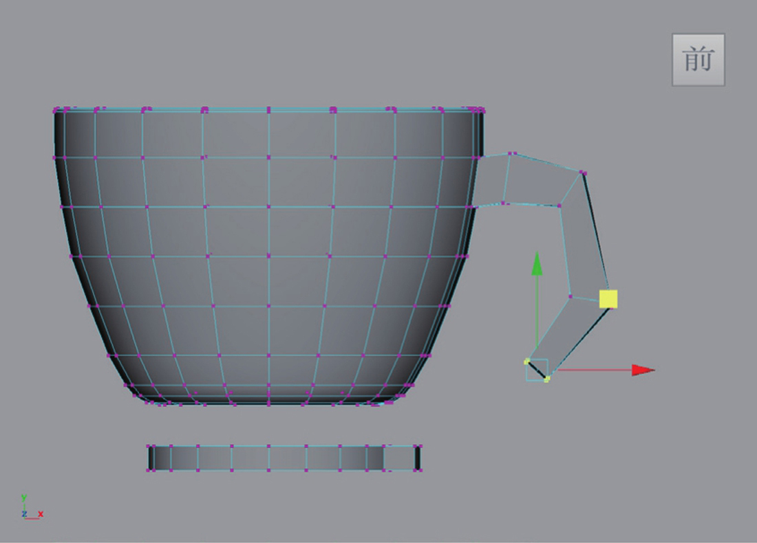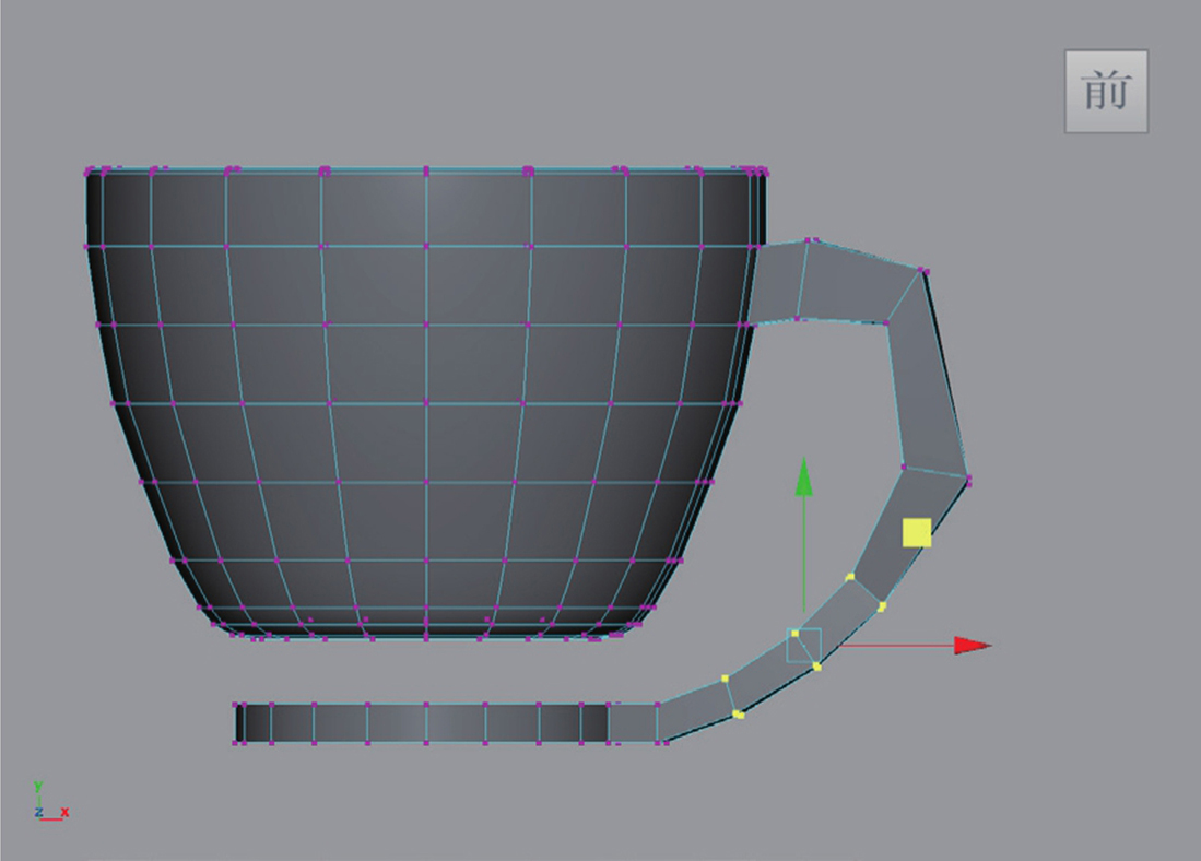 16 在前视图中,调整杯子把手的顶点位置,制作出如图3-70所示的模型。