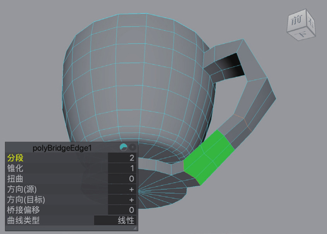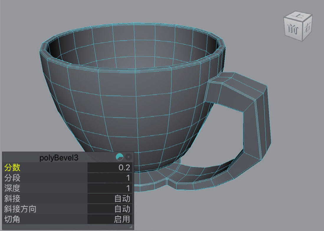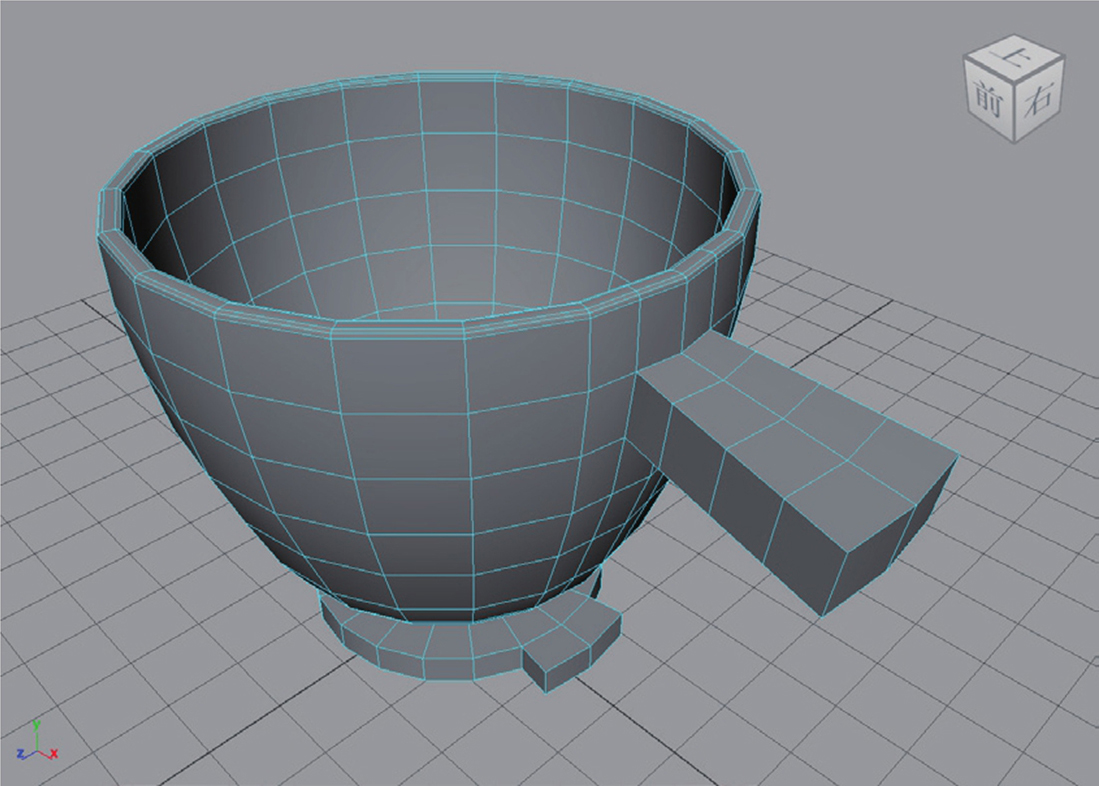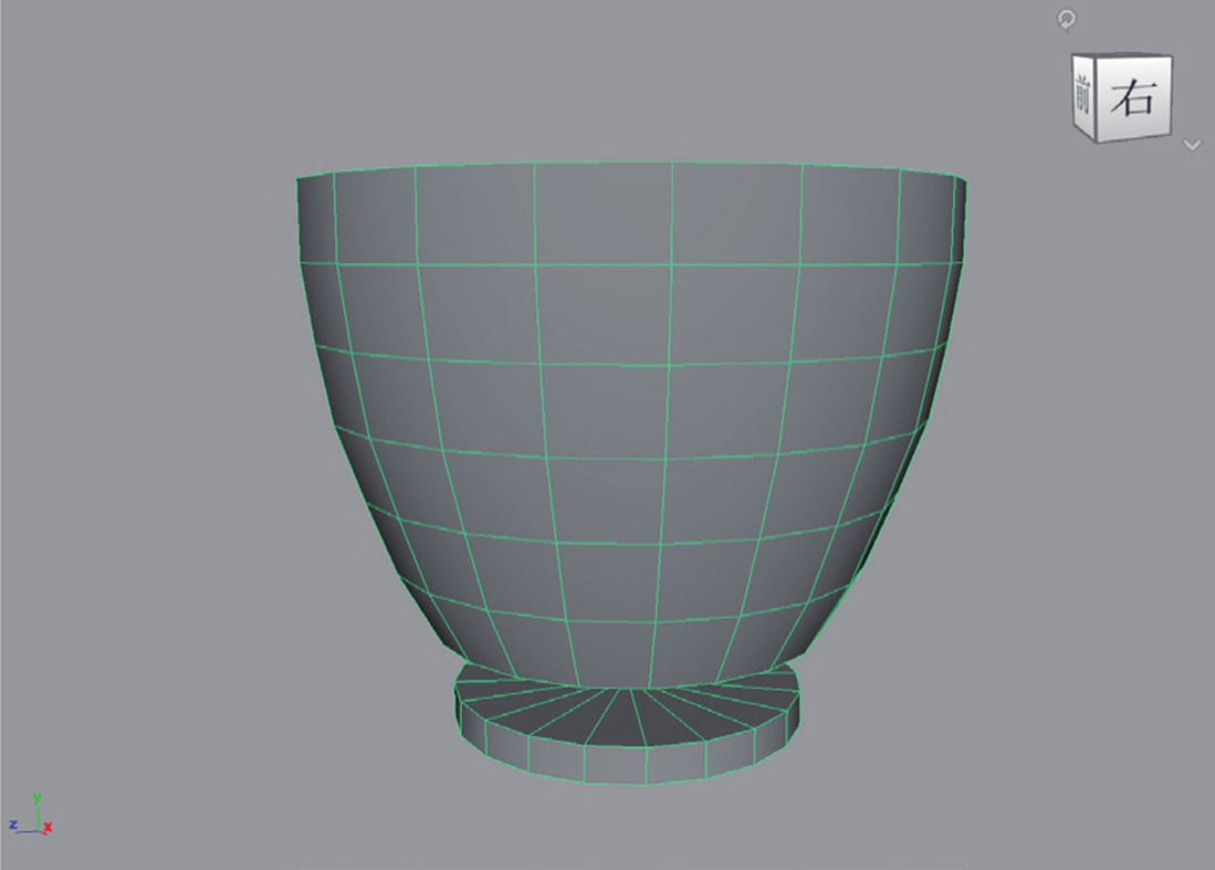 16 在前视图中,调整杯子把手的顶点位置,制作出如图3-70所示的模型。