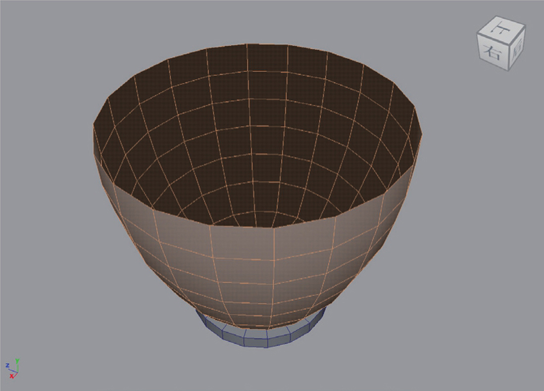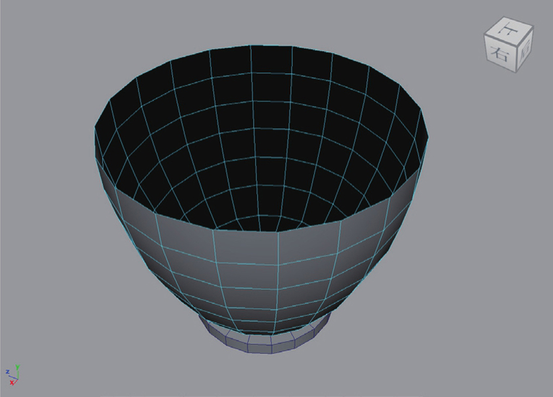 07 使用“缩放”工具调整模型的顶点至如图3-53所示的状态,制作杯子的弧形结构。