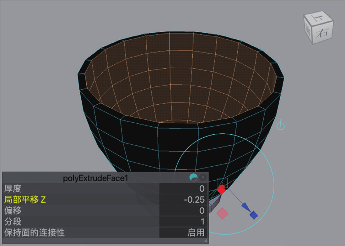 09 选中如图3-56所示的面,使用“建模工具包”面板中的“挤出”工具,制作如图3-57所示的模型结果。