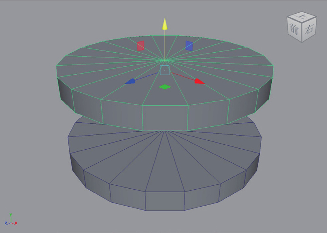 04 按住Shift键,配合“移动”工具向上单击并拖曳复制一个圆柱体模型,如图3-48所示。