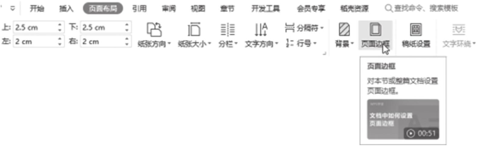 ③在“页面布局”选项卡,点击“页面背景”组“页面边框”按钮。如图2-68所示。