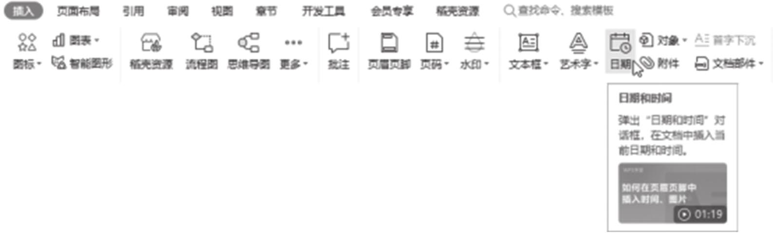 ①将光标定位于文档末尾。在“插入”选项卡“文本”组中,点击“日期”按钮。如图2-80所示。