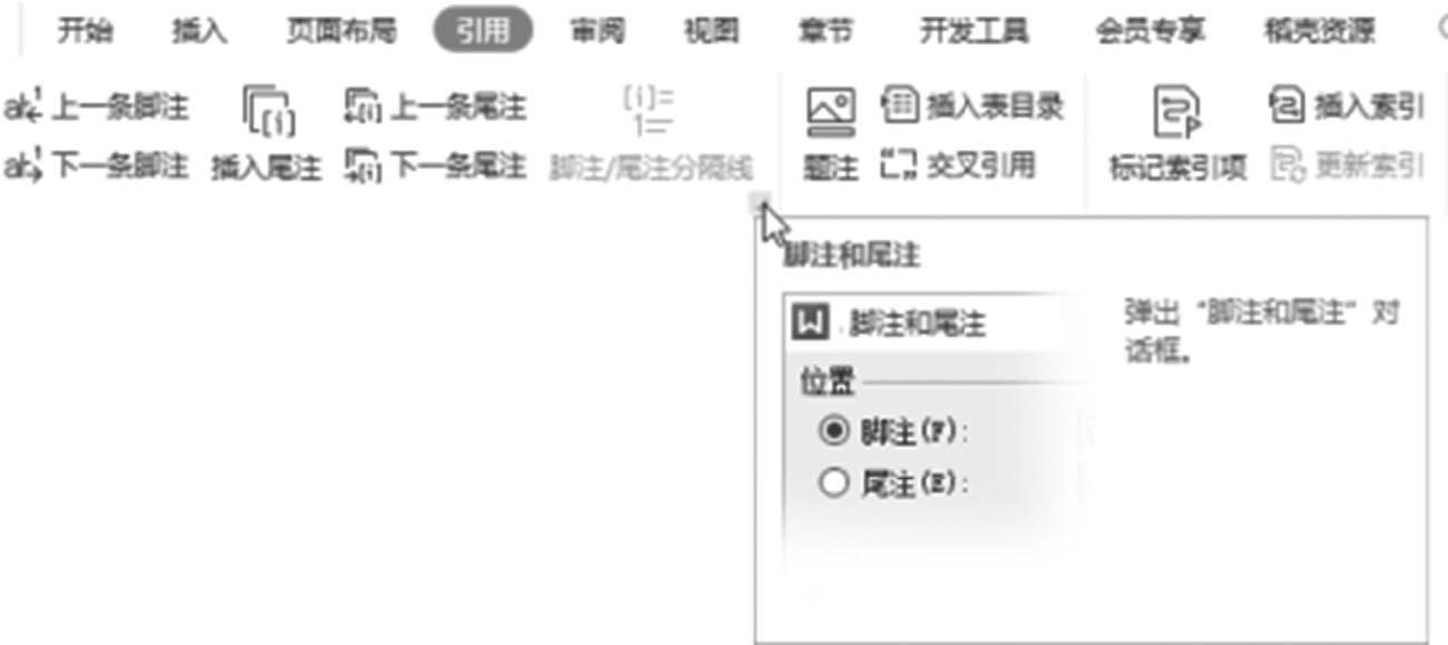 (2)插入脚注和尾注 可以将光标悬停引用标记上查看脚注和尾注。当光标停留在引用标记上时,会出现一个包含注释文本的屏幕提示。