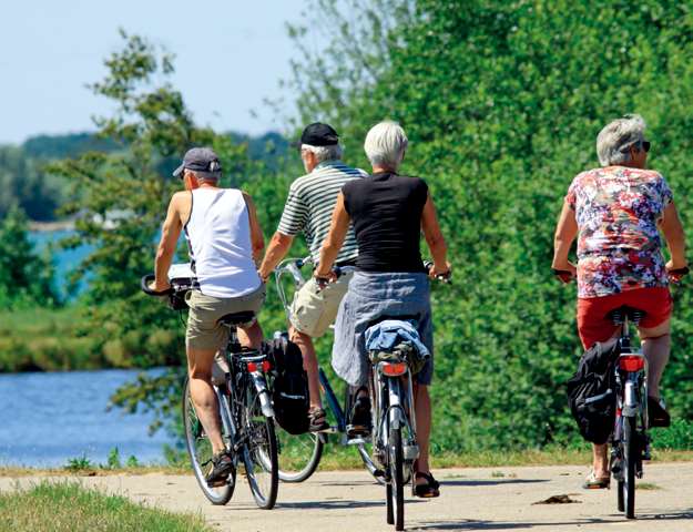 对老年人来说,保持同一强度(强度不宜过大)、持续时间在 6 分钟以上的运动一般可以列为有氧运动。有氧运动项目较多:有轻度至中度的耐力运动,如健走、慢跑、游泳、自行车等;有伸展运动,如太极拳、八段锦、五禽戏、扭秧歌、健身操等。乒乓球、羽毛球、台球、门球、气排球、地掷球等温和的球类项目也属于有氧运动。