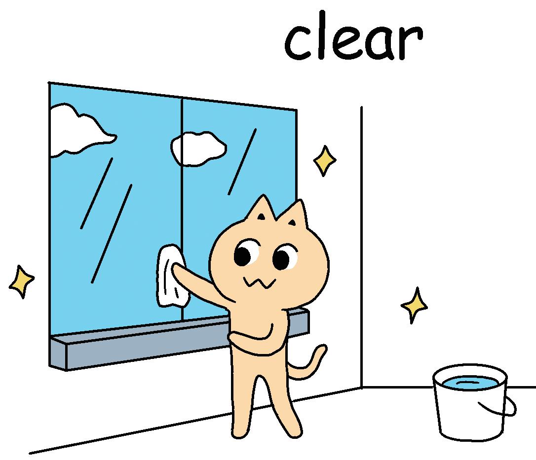 clear [klɪə(r)] 形 清楚的;明显的;清澈的;晴朗的 动 清除