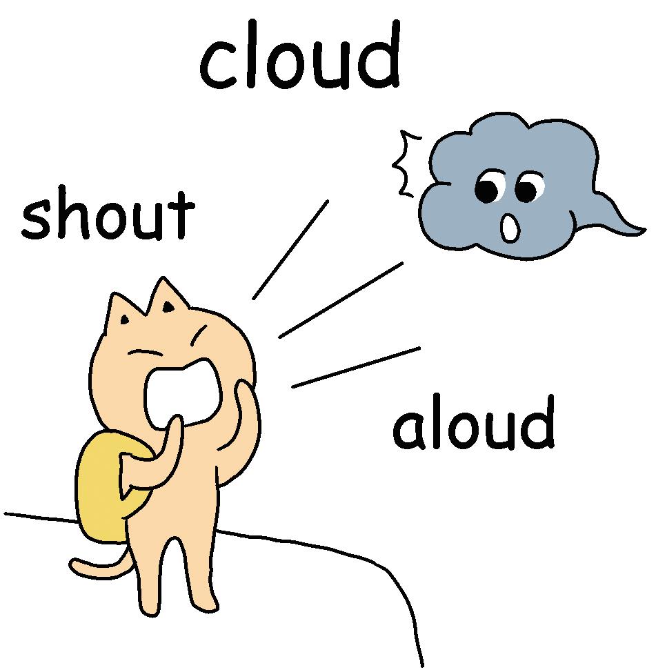 记 联想记忆: 看见cloud(云),shout(喊)aloud(大声地)