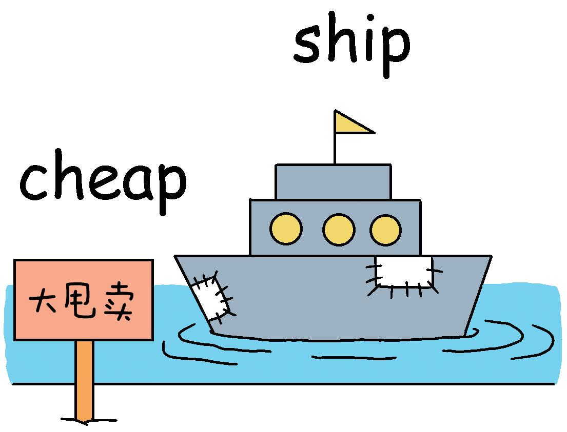 记 联想记忆: 这艘ship(轮船)非常cheap(便宜的)
