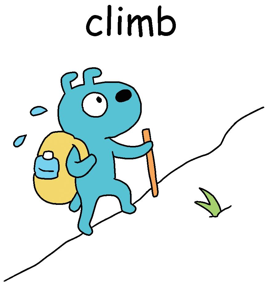 用 搭配: climb a hill/mountain爬山 climb over爬过… climb up爬上… 名词形式: climber登山者