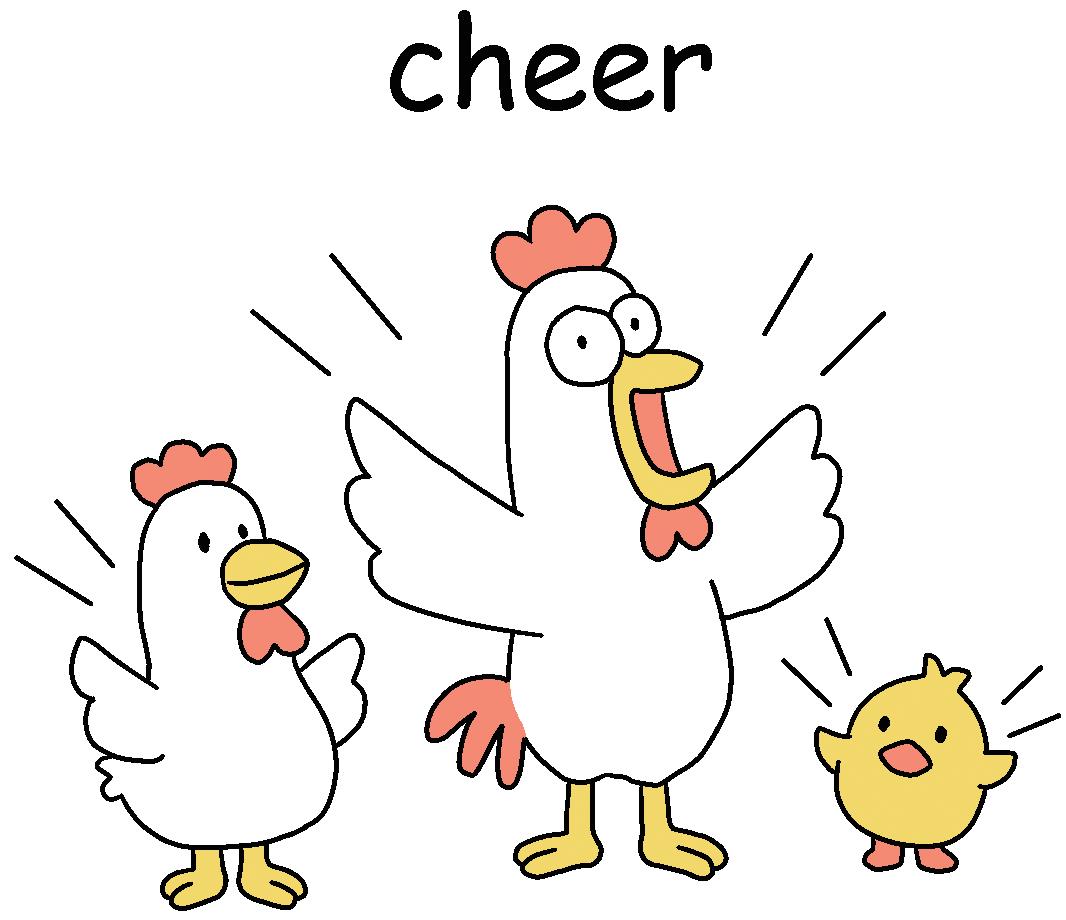 用 搭配: cheer on为…加油 cheer up (使)变得高兴 日常用语: Cheers! 干杯!