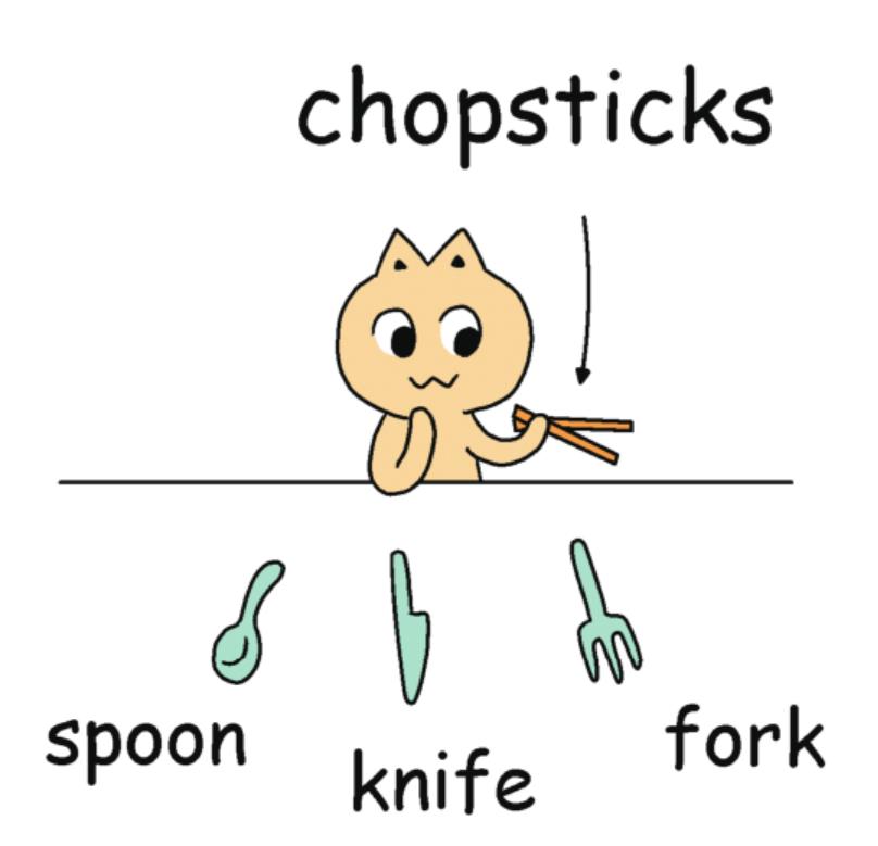 记 联想记忆: chop(砍)+ sticks(棍)→砍下树木做成小棍,变成筷子→筷子