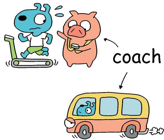 用 搭配: basketball coach 篮球教练 by coach 乘长途汽车