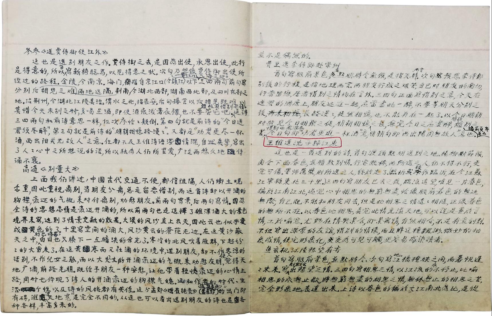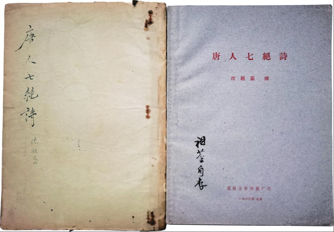 左为1957年左右油印竖行本《唐人七绝诗》课程讲义,右为1963年武汉大学印刷厂排印本