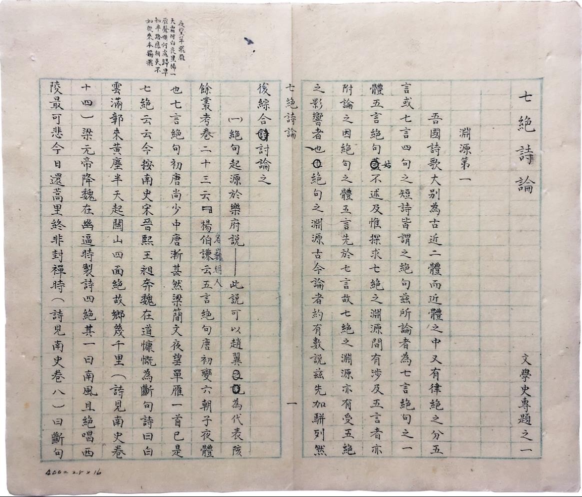 《七绝诗论》稿本封面及目次