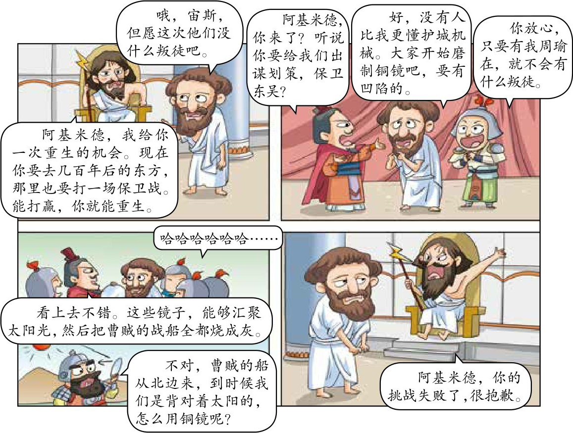 自打我回国后又过了几十年,罗马人入侵了我的家乡叙拉古。为了对抗入侵者,我竭尽自己所有的才学,制造各种护城器械。我制造的抓钩式起重机,可以将罗马人的大船抓起来掀翻。同时,我还制造了巨大的凹面镜,反射并汇聚太阳光,可以将罗马人的战船烧成灰烬。当罗马人登陆上岸后,等待他们的还有根据杠杆原理制作的投石机、投火器。据传闻说,罗马统帅马塞留斯称呼我为“懂几何的百手巨人”。