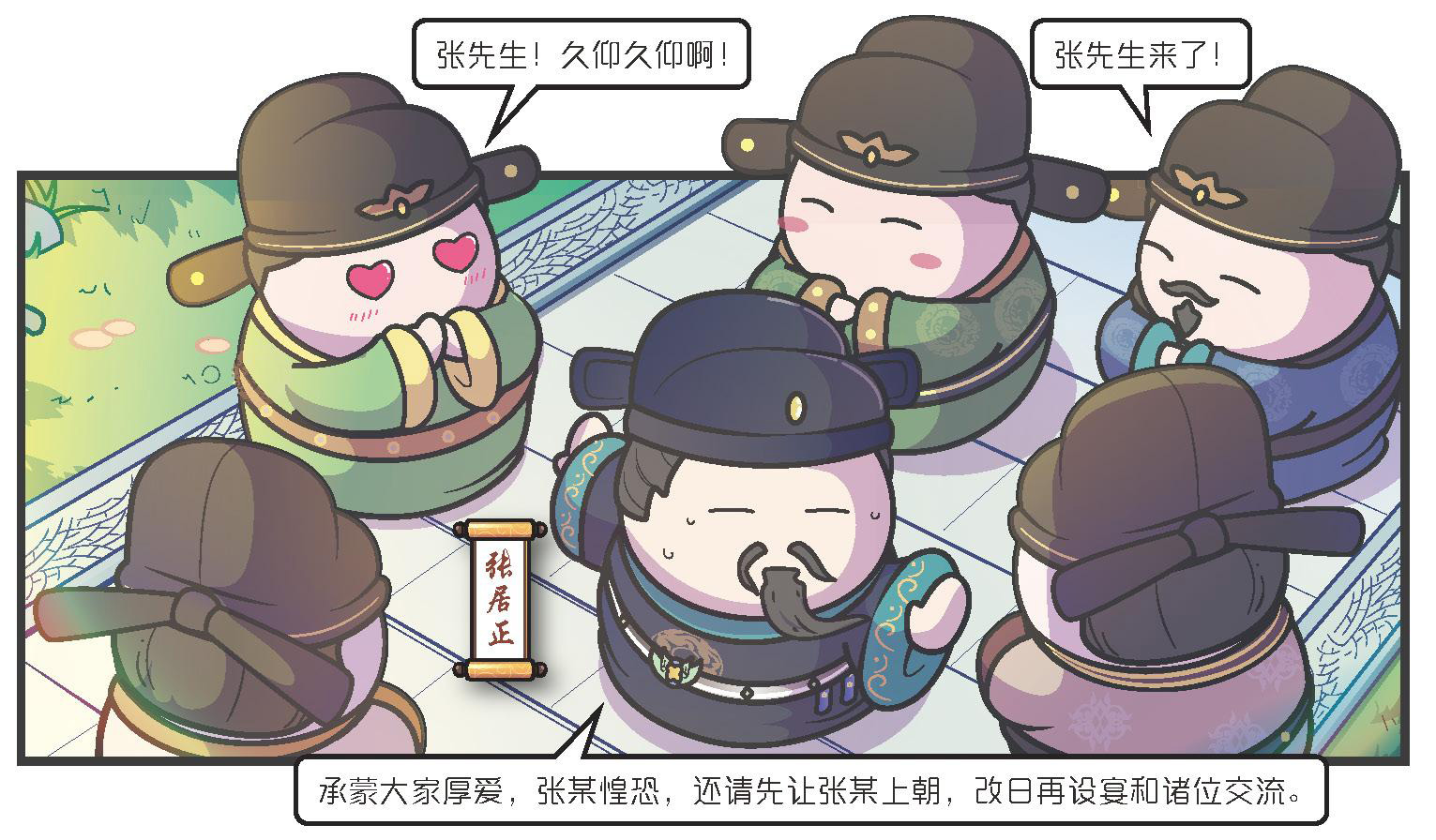 小万历对这位亲切、智慧、保护了“大伴”冯保的张先生非常依赖。小万历怕张先生讲课过于辛苦,在张先生站立的地方冬天铺毯夏天进扇。有一次,听说张先生腹痛,十二岁的小万历还亲手调了一碗汤来慰劳他。