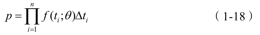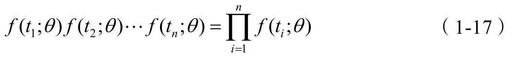 式中, θ 为函数的待估计参数,假设( T 1 , T 2 ,…, T n )为随机变量,且观测值 t i ( i =1,2,…, n )的联合概率密度为