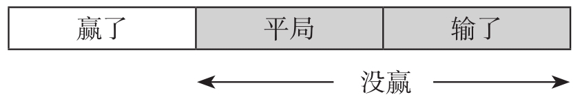 所以,我们可以将“输了”称为“赢了”的“反对”,以区别于否定。可能有人会认为“赢了”的否定就是“输了”,可是,“输了”是“赢了”的反对形式,而不是否定形式。“赢了”的否定是“没赢”,它等同于“平局或输了”。