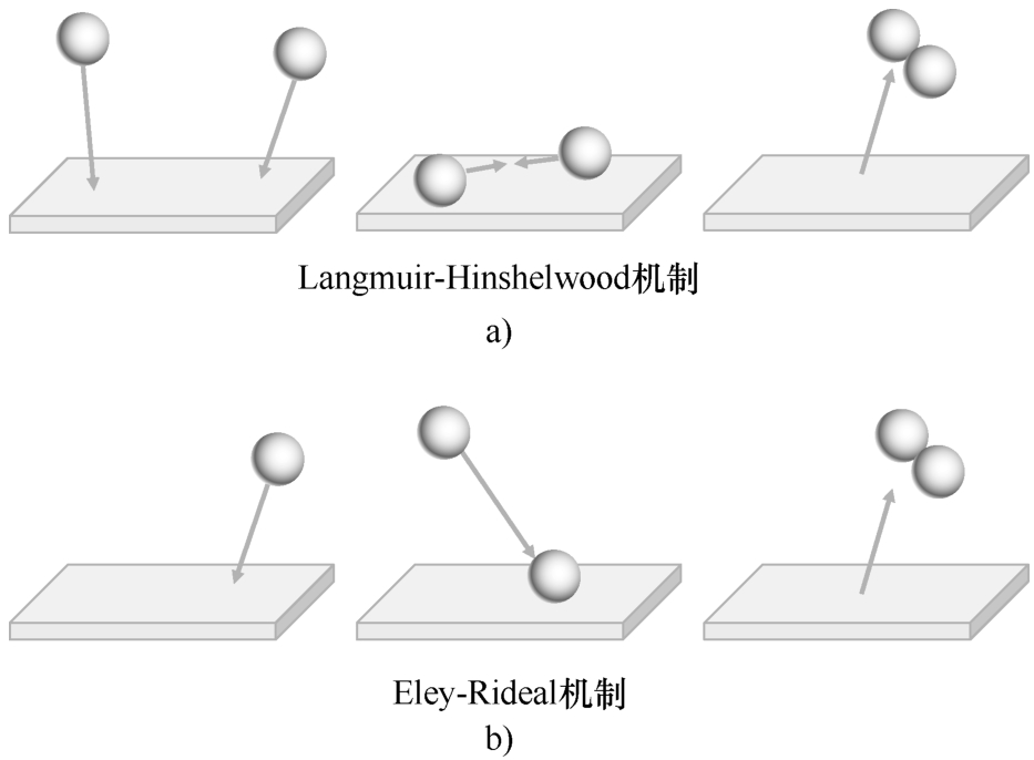 图2.6 Langmuir-Hinshelwood(图a)和Eley-Rideal(图b)表面反应机制示意图