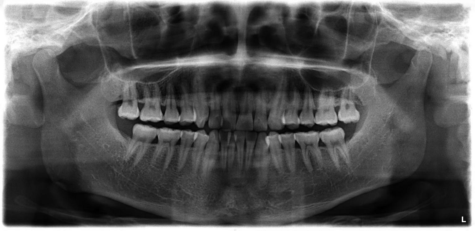 在为口腔癌患者制订治疗计划时,医生需要考虑到牙齿和颌骨这两个因素。全景片,也称“全颌曲面断层片”,能够显示全口牙齿和上下颌骨,可以直观地了解口腔癌患者的口腔内牙齿整体情况,尤其是龋齿、残根及智齿等,为治疗计划的制订,特别是牙齿的处理方案,提供直观的依据。此外,全景片还可以显示鼻腔、上颌窦及颞下颌关节等解剖结构,能够大致观察口腔癌对颌骨组织是否有影响以及影响程度,辅助医生判断是否需要切除颌骨组织及切除的安全范围。全景片是二维的影像检查,操作简单、辐射剂量很小、价格便宜,是临床上口腔癌诊疗的基础检查手段之一。
