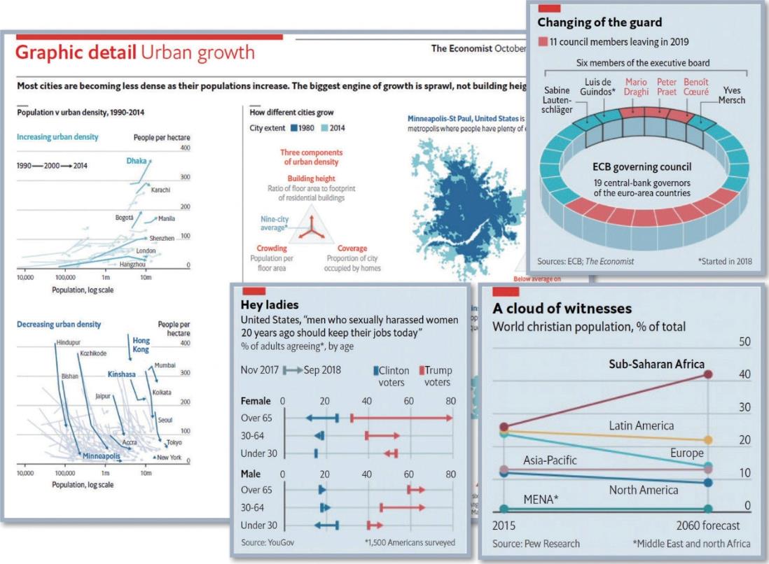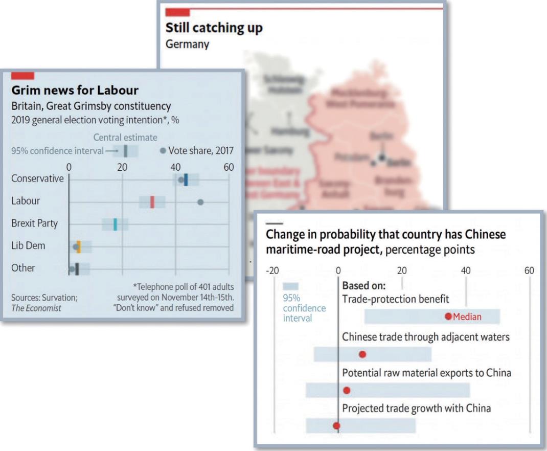 视觉暗示分为五大类,共9种。其中,最基础的是位置视觉暗示。因为图表本身有一个固定的显示范围,所以目标图形出现在这个范围内的什么位置都可以非常直观地被读者观察到,不需要任何思考。位置视觉暗示的应用范例如图2-9所示(图表来自《经济学人》)。