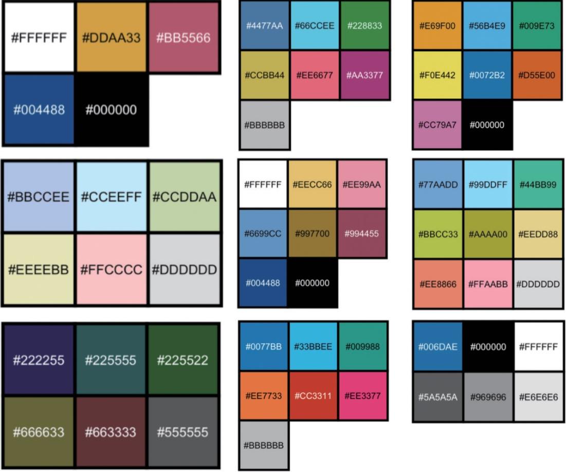 图2-16 常见的色盲友好配色方案(Emi Tanaka)