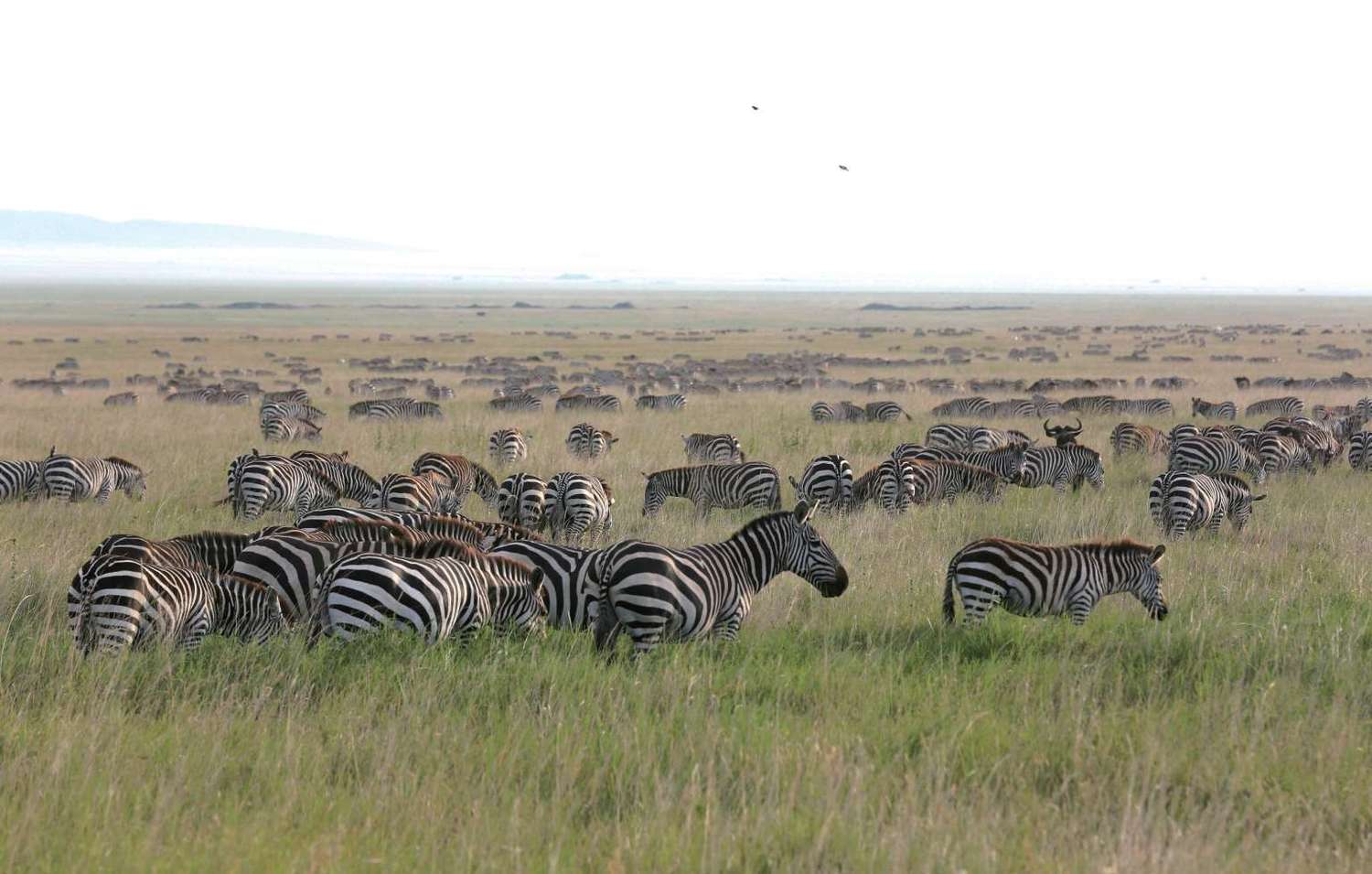 斑马的迁徙规律至今还没有完全弄清,它们和角马的迁徙路线并不重合,出发和折返的时间也摇摆不定。斑马可以吃粗粝的长草,它食道狭窄,只有一个胃,大肠特别是盲肠异常发达,盲肠中有大量的细菌和纤毛虫消化低营养的植物纤维,所以它们不像角马必须跟着降雨云奔走。但枯草和长草吃下去尤为胀肚,所以斑马看起来都大腹便便。