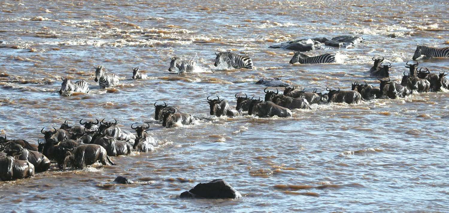 一部分斑马会横渡马拉河,但大多数斑马在抵达马拉河之后便就此止步。斑马渡河时也保持以家庭为单位,它们很狡猾,不会去做渡河的排头兵。角马在河边徘徊犹豫,斑马就在角马群的旁边“煽风点火”,它们发出像驴一样的叫声,怂恿角马们赶紧下水,那意思好像是:“跳啊!你倒是跳啊!”终于,角马大部队跃入水中,风风火火渡河时,斑马就会跟上并夹杂其中,以免遭鳄鱼袭击。
