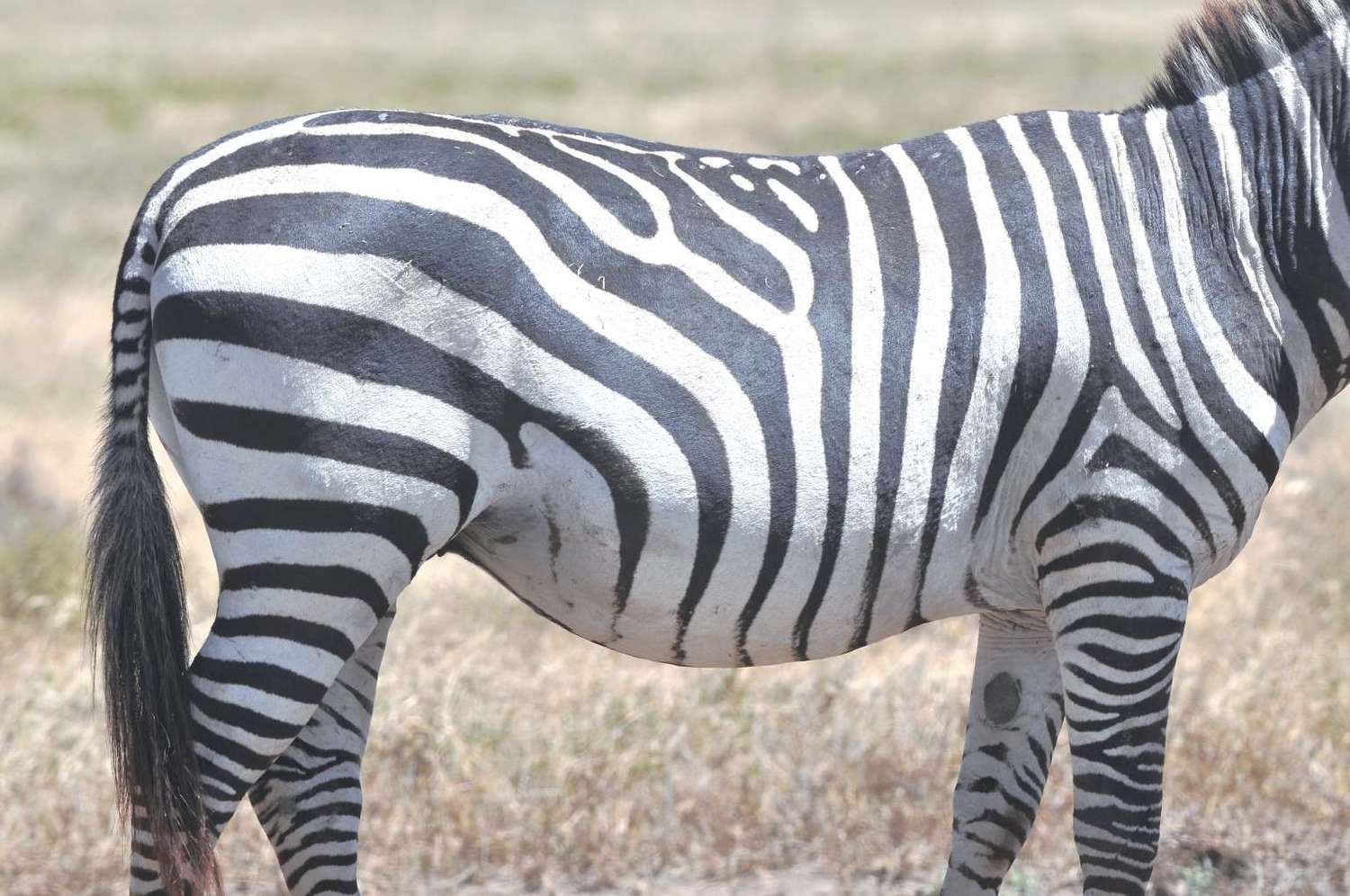 还有一种观点认为,黑白条纹是用来调节体温的。来自加利福尼亚大学的一项研究结果表明:草原上气候炎热,黑色条纹吸热,白色条纹散热,于是在斑马表皮形成一种小循环,以降低体温。这种解释确实有道理,但炎热对所有动物一视同仁,其他动物也得经受炎热的考验。水牛、疣猪、河马等皮肤比斑马更厚,为什么它们都没有进化出黑白条纹呢?